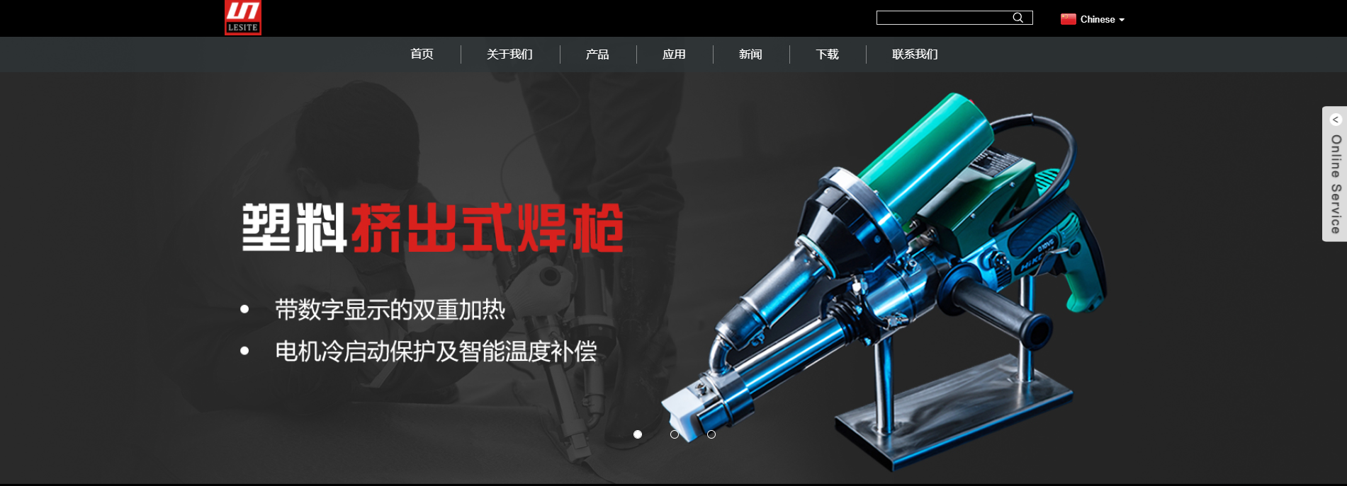 这次重磅升级的新官网亮点很多,用户进入官网后就可以感受到视觉的全新蜕变,黑白红是官网的主视觉色调,与莱斯特logo完美呼应,保证了莱斯特VI设计的统一性。页面整体布局上更合理,视觉冲击感更强,格调更大气上档次。首页三张产品大图轮播,方便用户快速地了解莱斯特热卖主打产品。